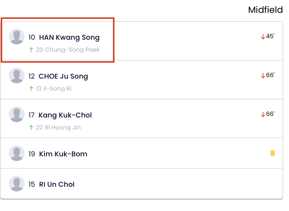 不過從北韓先發名單上卻有亮點,從2020年消失在公眾視野的韓光成,名列北韓的先發11人,此外替補中還有曾在義大利踢球經驗的崔成赫也在陣中,可說是令人相當意外,同時也解開大家對韓光成生死未卜的謎底,而該場對敘利亞的比賽,韓光成僅踢半場就被換下。